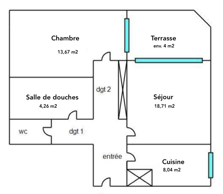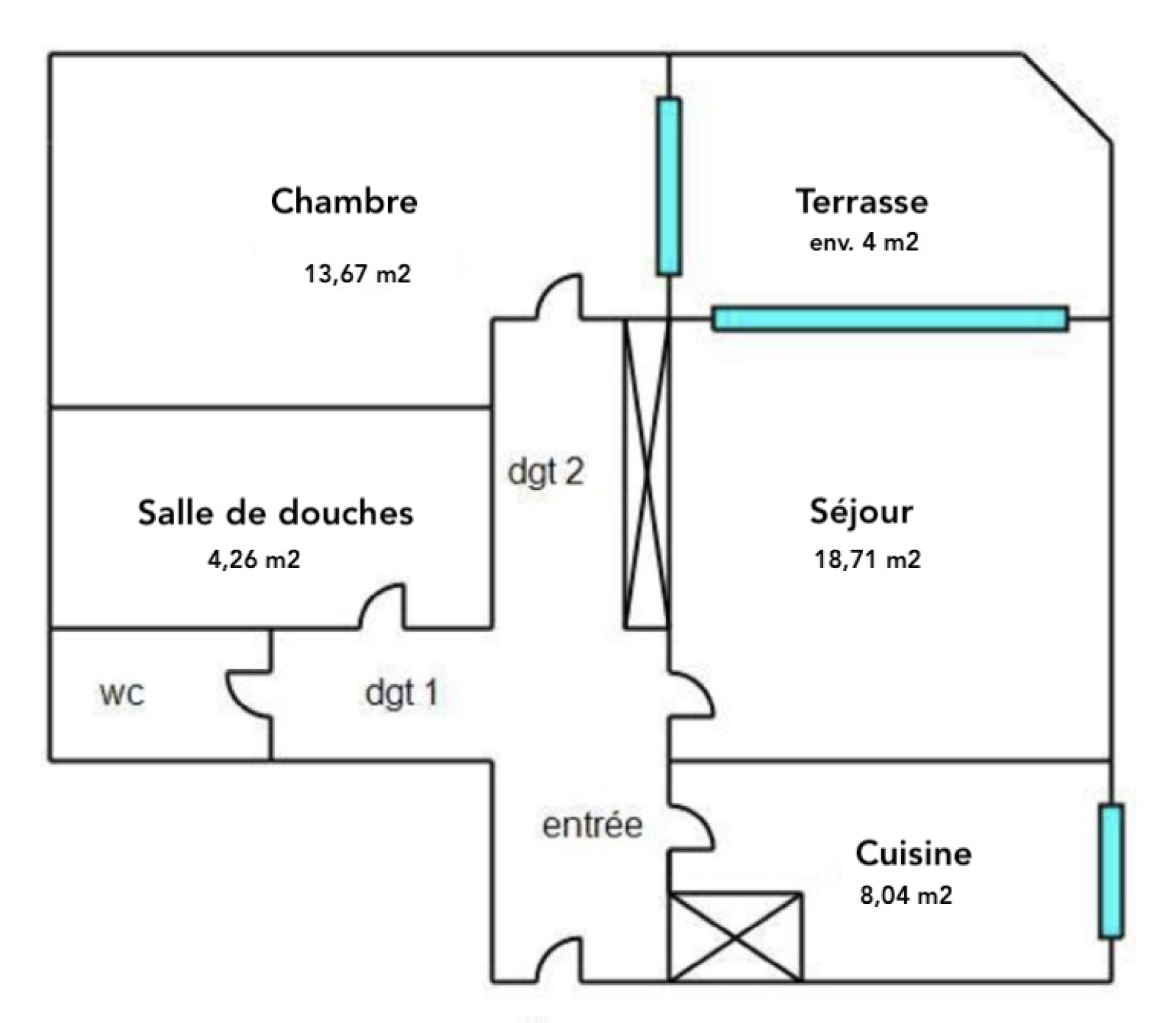 Paris (75020) Appartement 55 m2 - 2 pièces - Terrasse