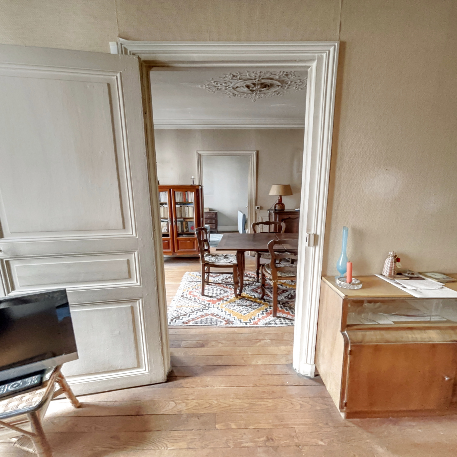 Parquet, moulures et cheminées dans toutes les pièces.